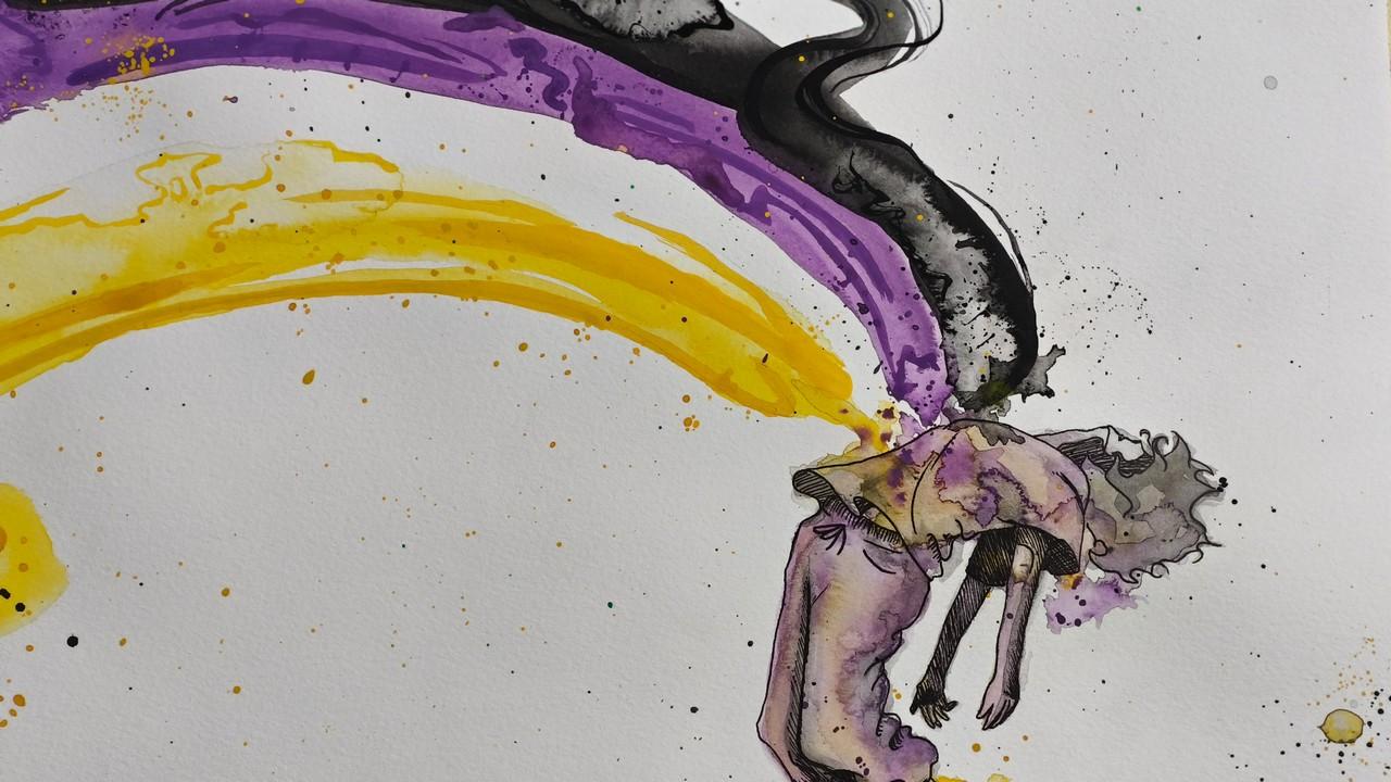 Åzzie Holmberg har i den här utställningen fokuserat på färg, rörelse, människokroppen och abstrakta mönster, på att älska sig själv och att se möjligheter i blomkrukor som gått sönder.